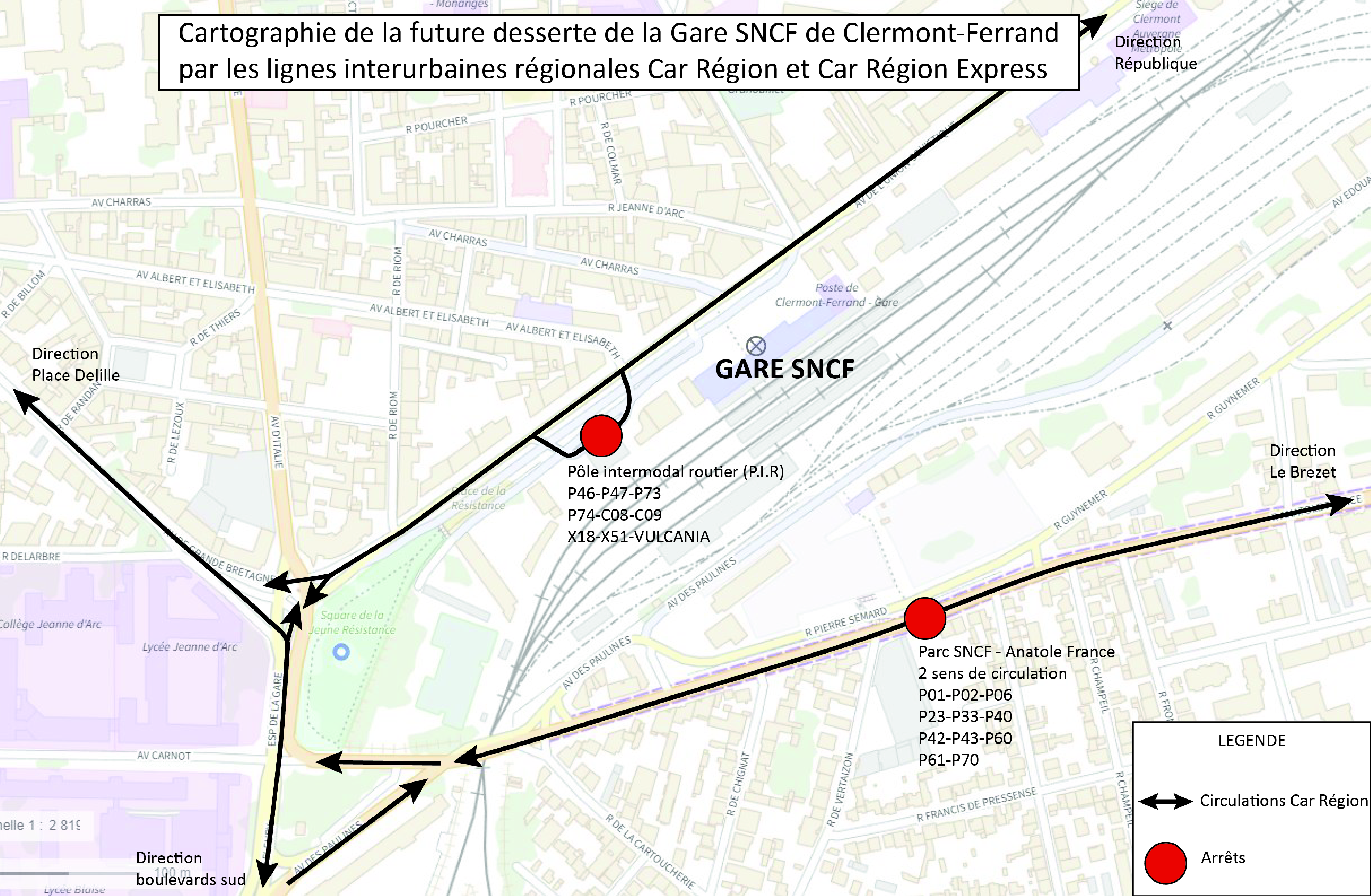 Les autres lignes régionales qui n'ont pas été citées précédemment et qui desservent la gare SNCF de Clermont-Ferrand, verront leur arrêt être maintenu en avant de gare, Boulevard de l'Union Soviétique, au niveau du pôle intermodal routier (P.I.R) devant l'agence C'Vélo.